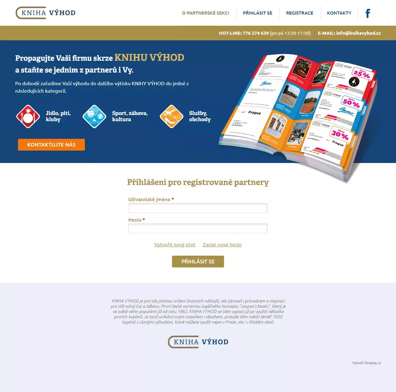 Objednávkový a registrační systém pro Knihu výhod byl výzvou. Systém se skládá ze sekce přihlášených partnerů, kteří vkládají své nabídky, systém z těchto nabídek prezentuje obsah pro tiskové podklady a nabízí tištěnou verzi k zakoupení s komplexním procesem objednávky.